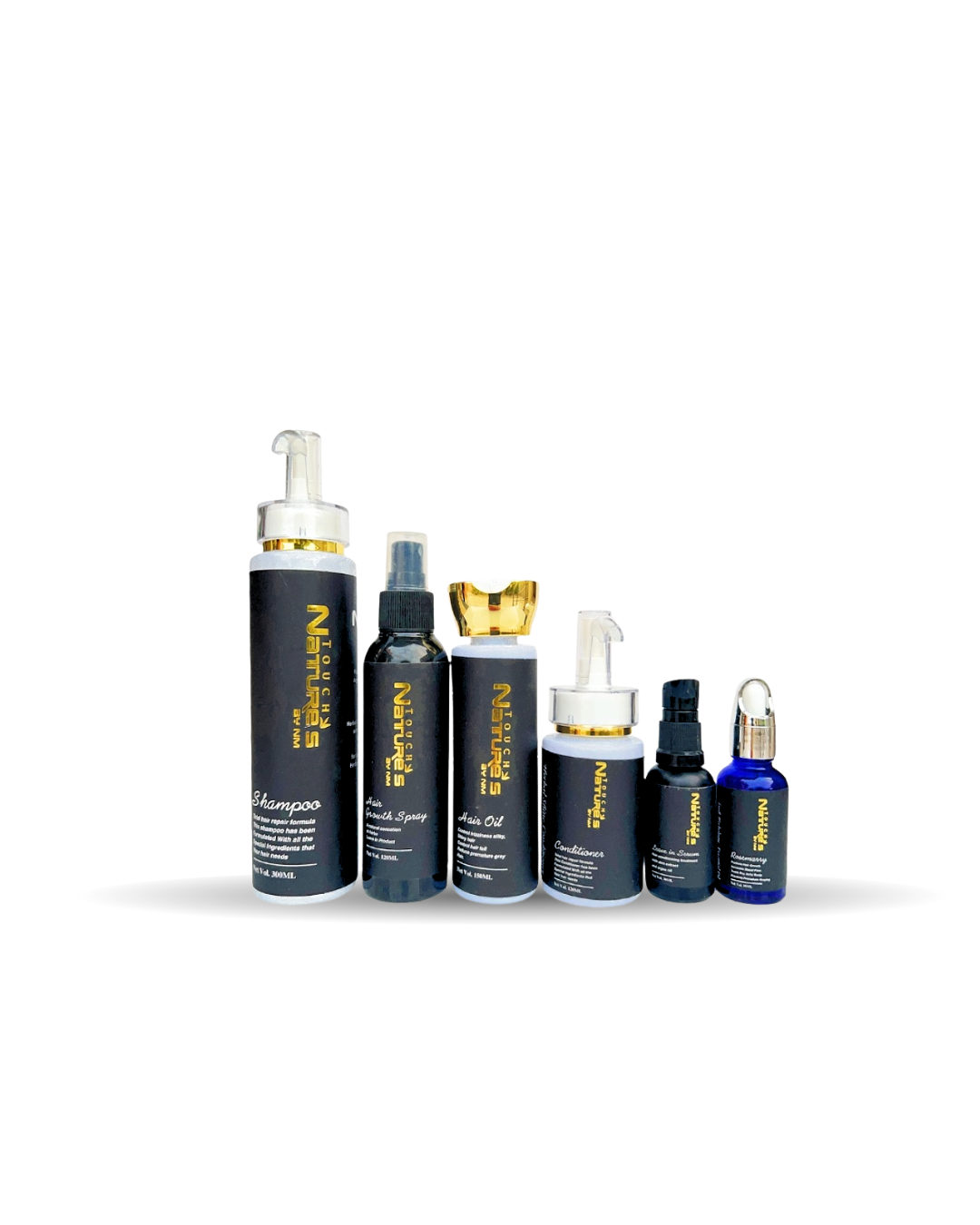 This all-in-one bundle has everything your hair needs — from deep cleansing and hydration to scalp treatment and styling. Whether you're starting your journey or looking for complete repair, this bundle brings the full experience of Nature’s Touch to your daily routine.